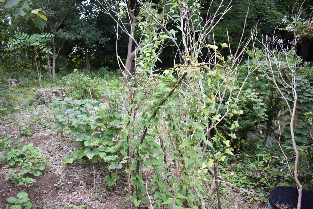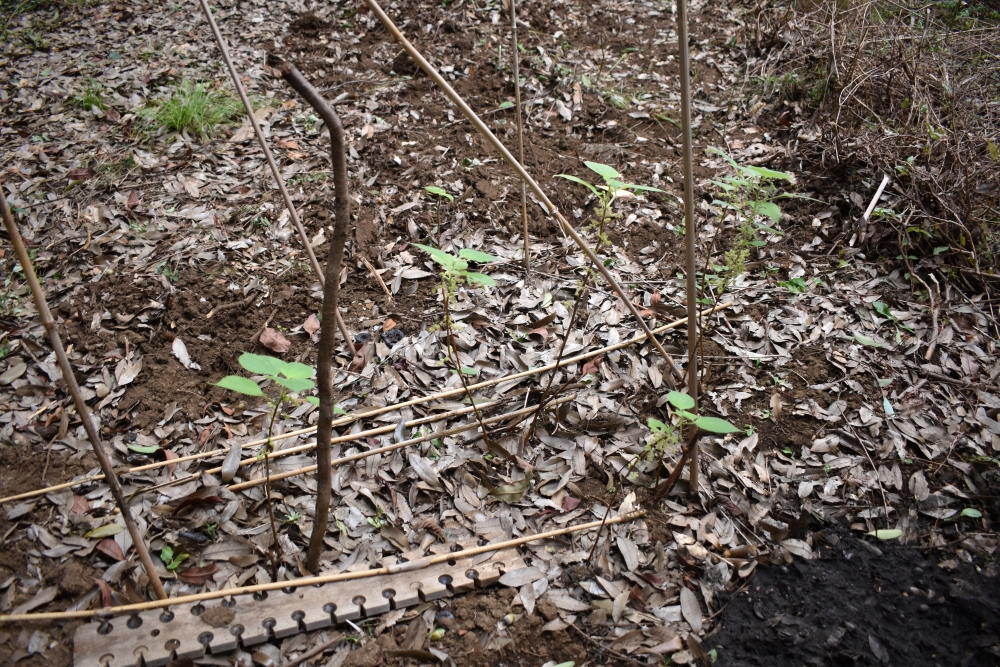 そんなヒガシとニシの足元にはカラムシを植えているのですが、とっても弱そう。もうちょっとたくましく育つものと思っていましたが…。枯れなかっただけありがたいですね