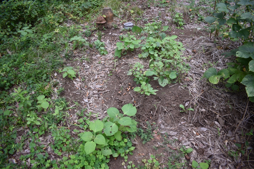 エゴマは今年は健在。暑すぎて虫がつかなかったのでしょうか。畑外にあるやつのほうが大きく育っています…