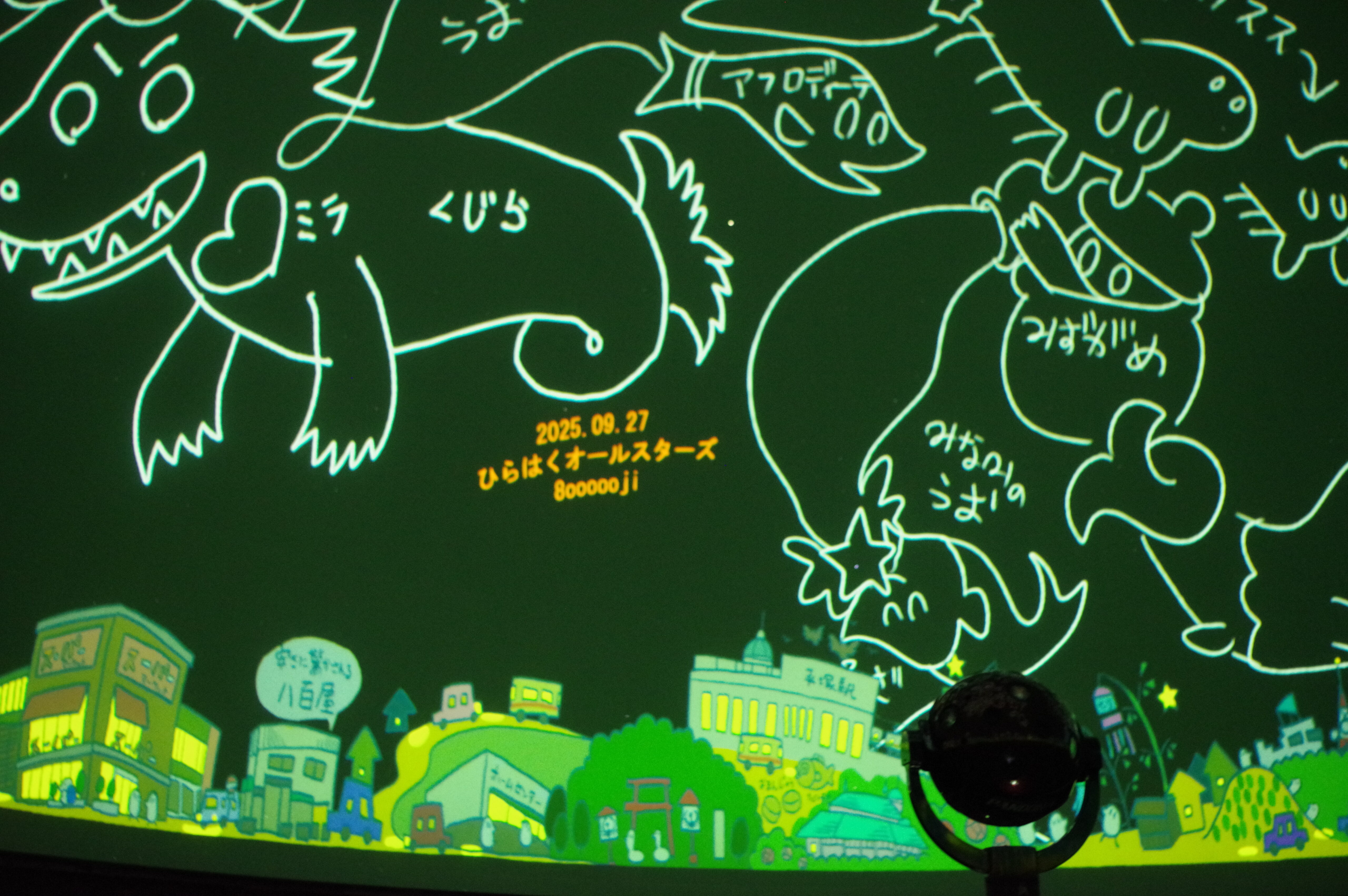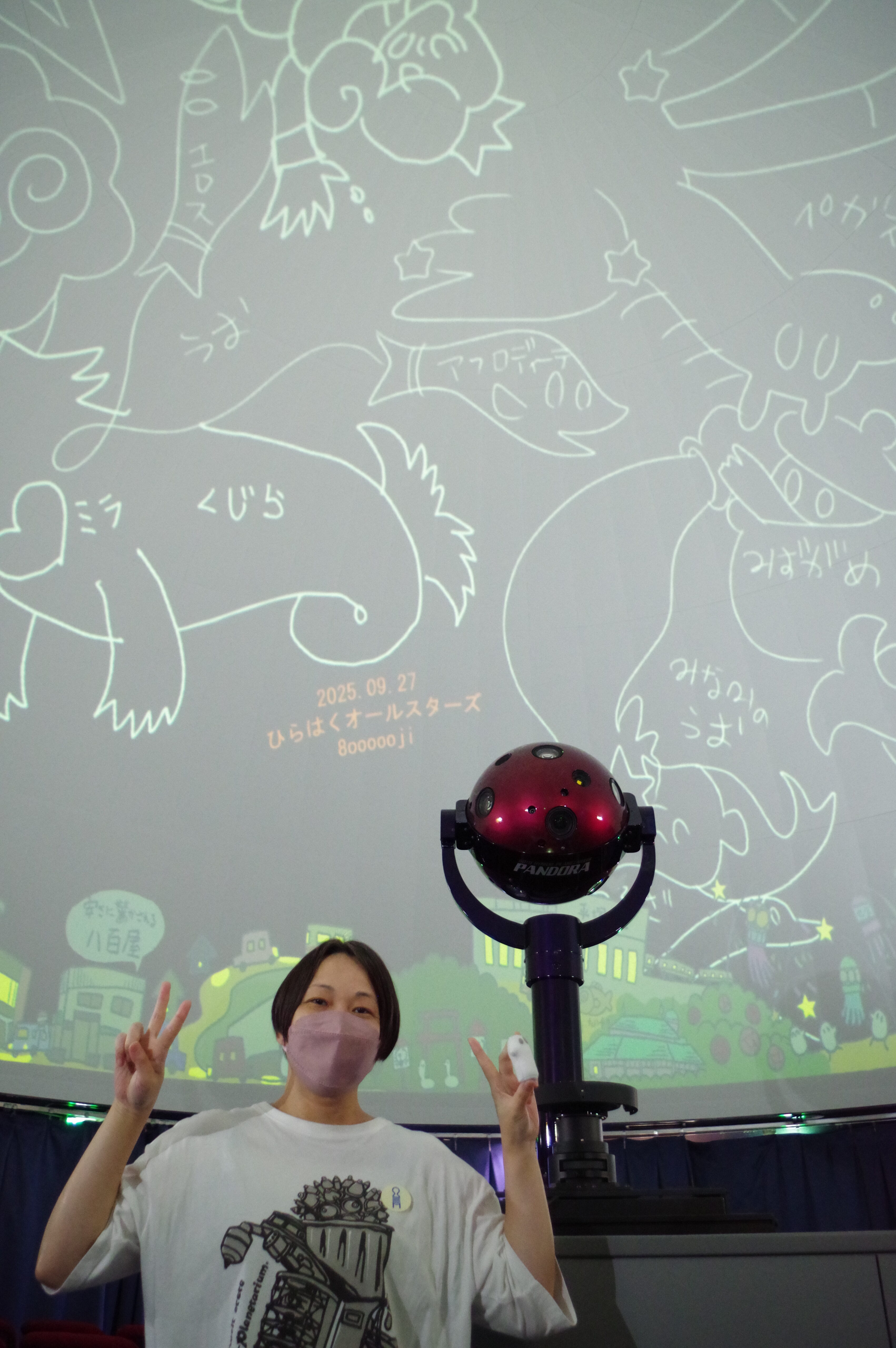 終わってから一週間が経ってしまい恐縮ですが、去る9月27日(土)、特別投影「ひらはくオールスターズ」の第11回が行われました。ゲストは特別投影「星空散歩」などでおなじみ、イラストレーターの八王子さん!