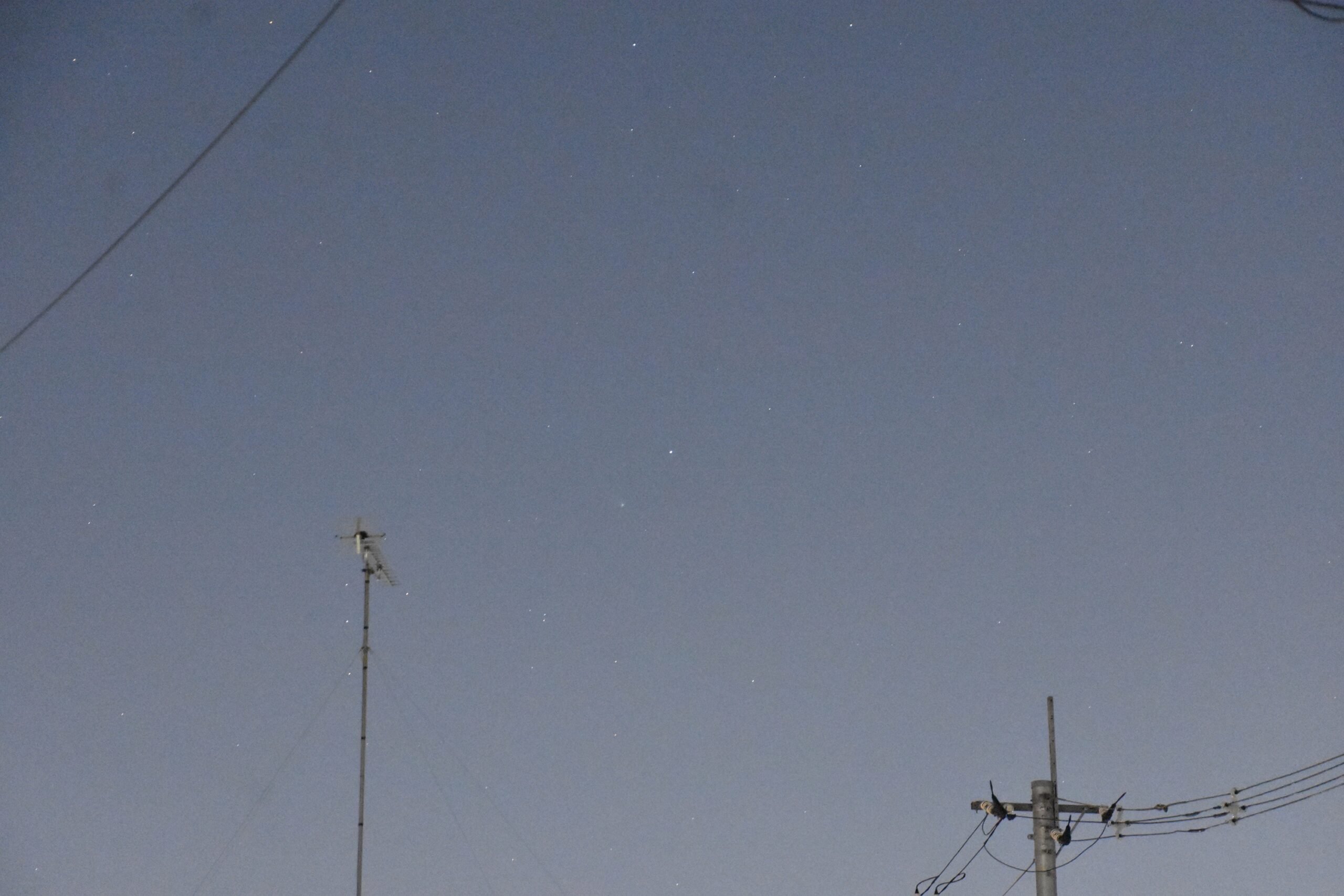 さて、明るくなってきているとはいっても、今日の時点で4等台になったかな、というところ。ポスターにも書きましたが、彗星の4等級は恒星の4等級とは訳が違います。市街地で肉眼で見ることはまず難しいでしょう。ですが、よく晴れていて双眼鏡を使えば割と簡単に見えます。平塚市内ではありませんが、本日早朝、筆者(塚田)が相模原市の自宅前で、双眼鏡を使ってレモン彗星を確認しています。写真も撮影してみましたが、バックグラウンド(空)が明るいので、辛うじて映ったな、という感じですね。