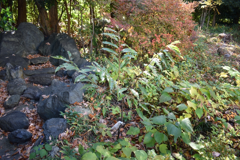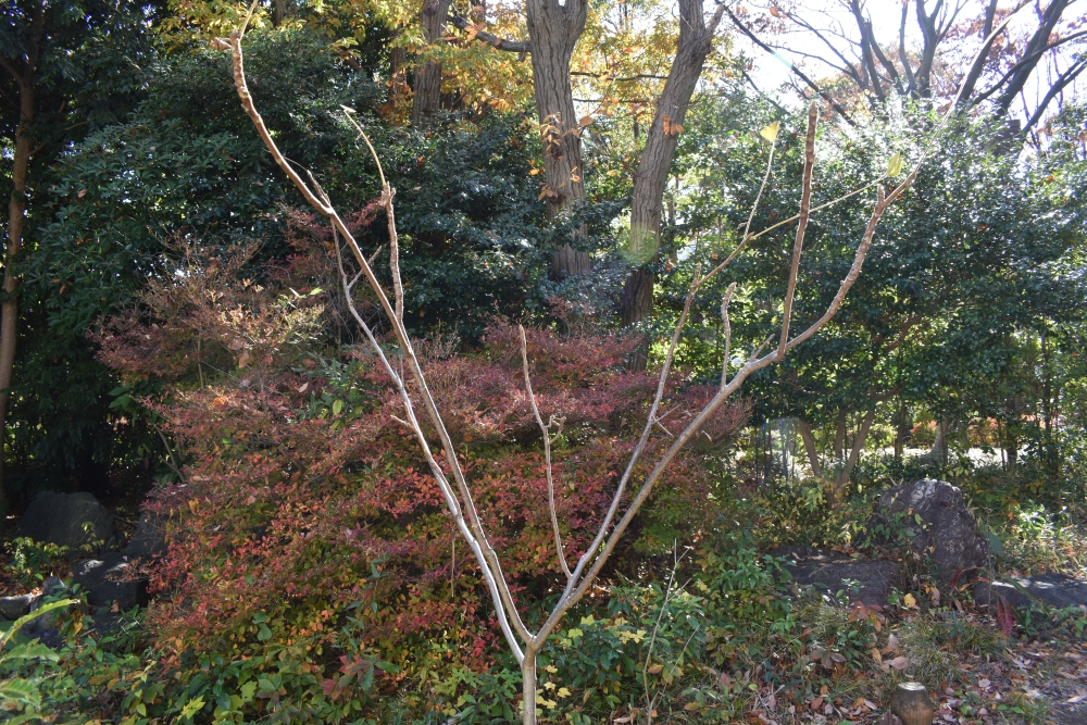 ボンバーは先月紅葉がはじまったか?と思っていたらすっかり葉を落としてしまいました。後ろの赤い主張がすごい。