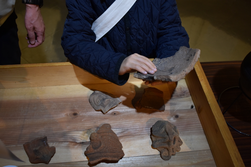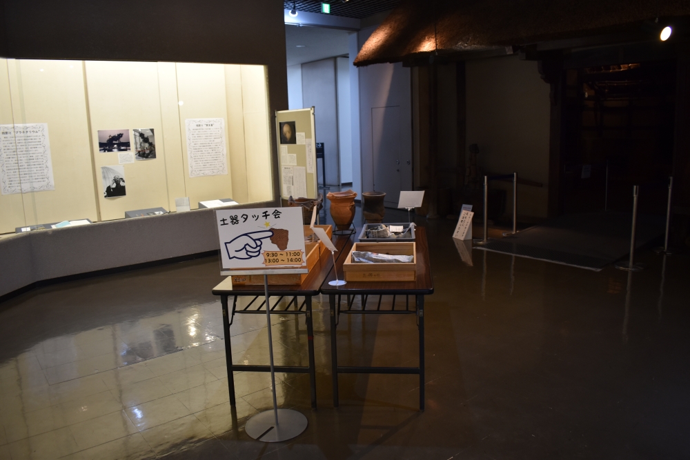 ということで、特別にふたつの貝塚からみつかった土器と石器にさわれるイベントを行いました。