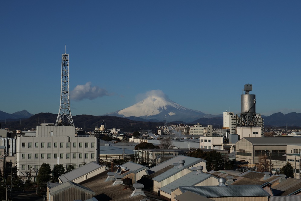 富士山はすそ野まで、丹沢もうっすら雪化粧しました。