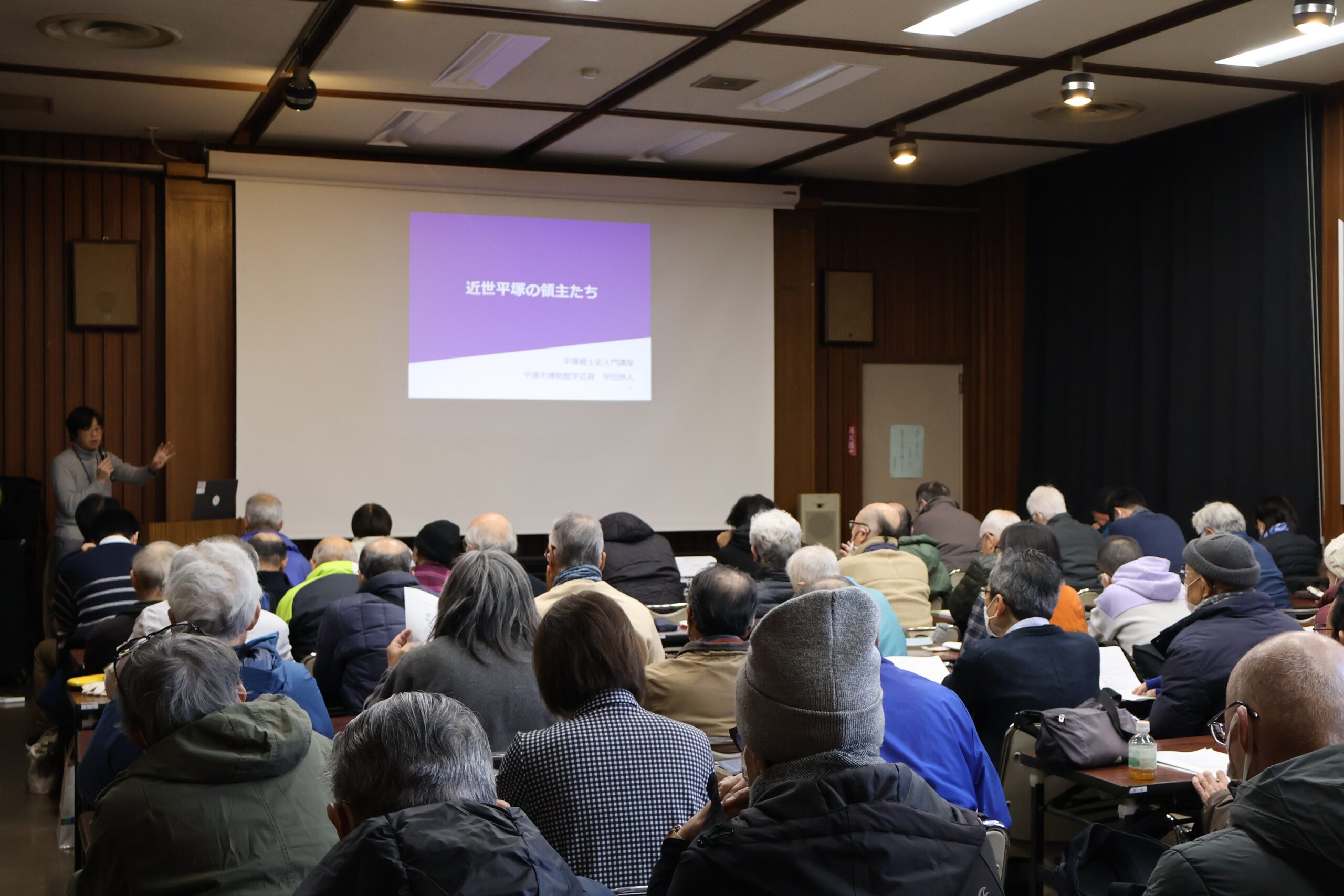 昨日の第4回から担当が早田学芸員にバトンタッチ、舞台も近世へと移り変わりました。第5回は「近世平塚の領主たち」と題し、徳川家康が江戸に入府して以降の平塚とその周辺が誰にどう治められていたかというお話。古文書を読み解きながらの講座は、前回までとはまた違った雰囲気だったのではないでしょうか。ありがたいことに会場の講堂は人であふれんばかり。満員御礼でした。