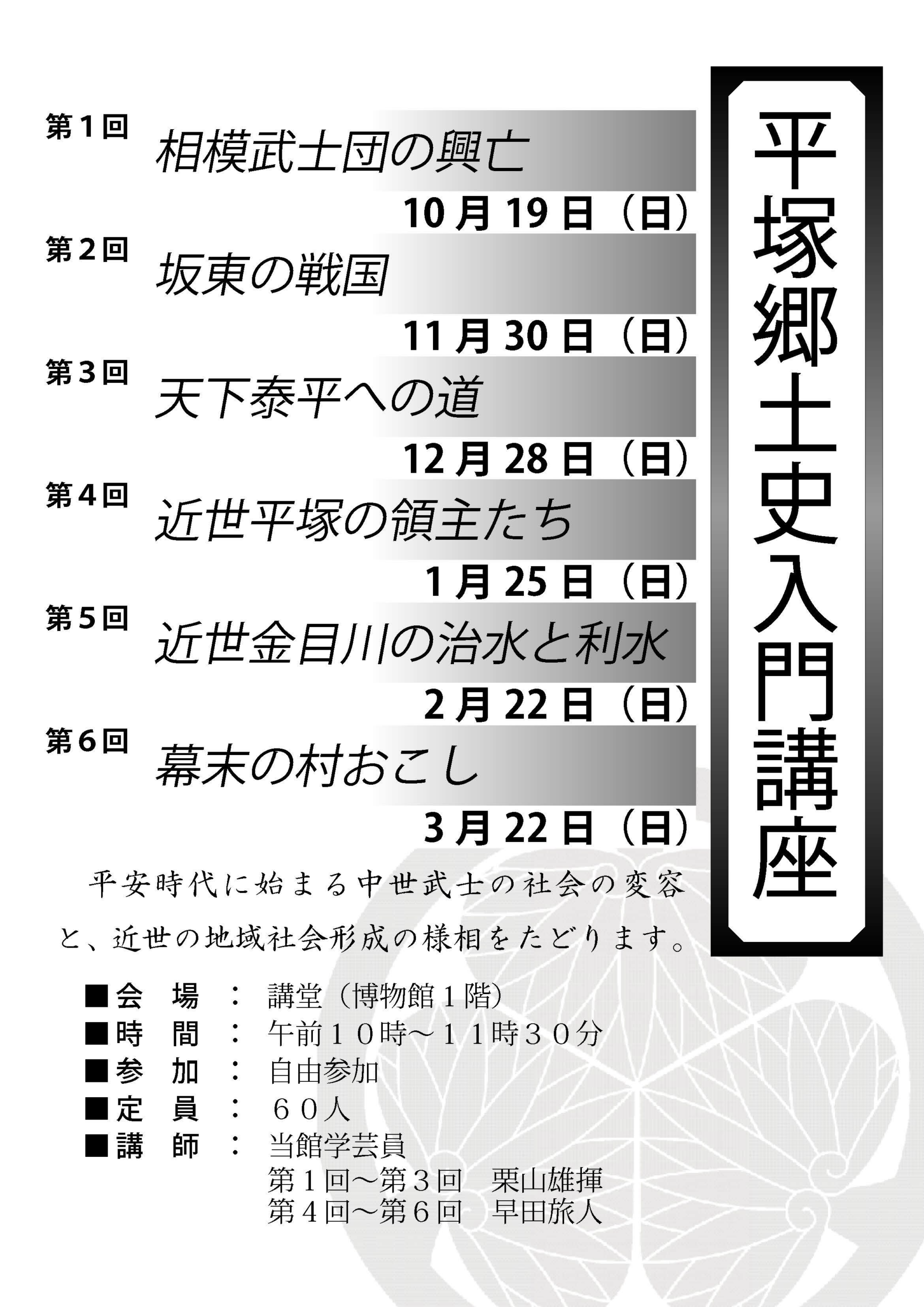 今年度の郷土史入門講座は全6回。10月、11月、12月は栗山学芸員が担当し、「相模武士団の興亡(第1回)」、「坂東の戦国(第2回)」、「天下泰平の道(第3回)」と主に中世を舞台に武士社会の変容を解説しました。