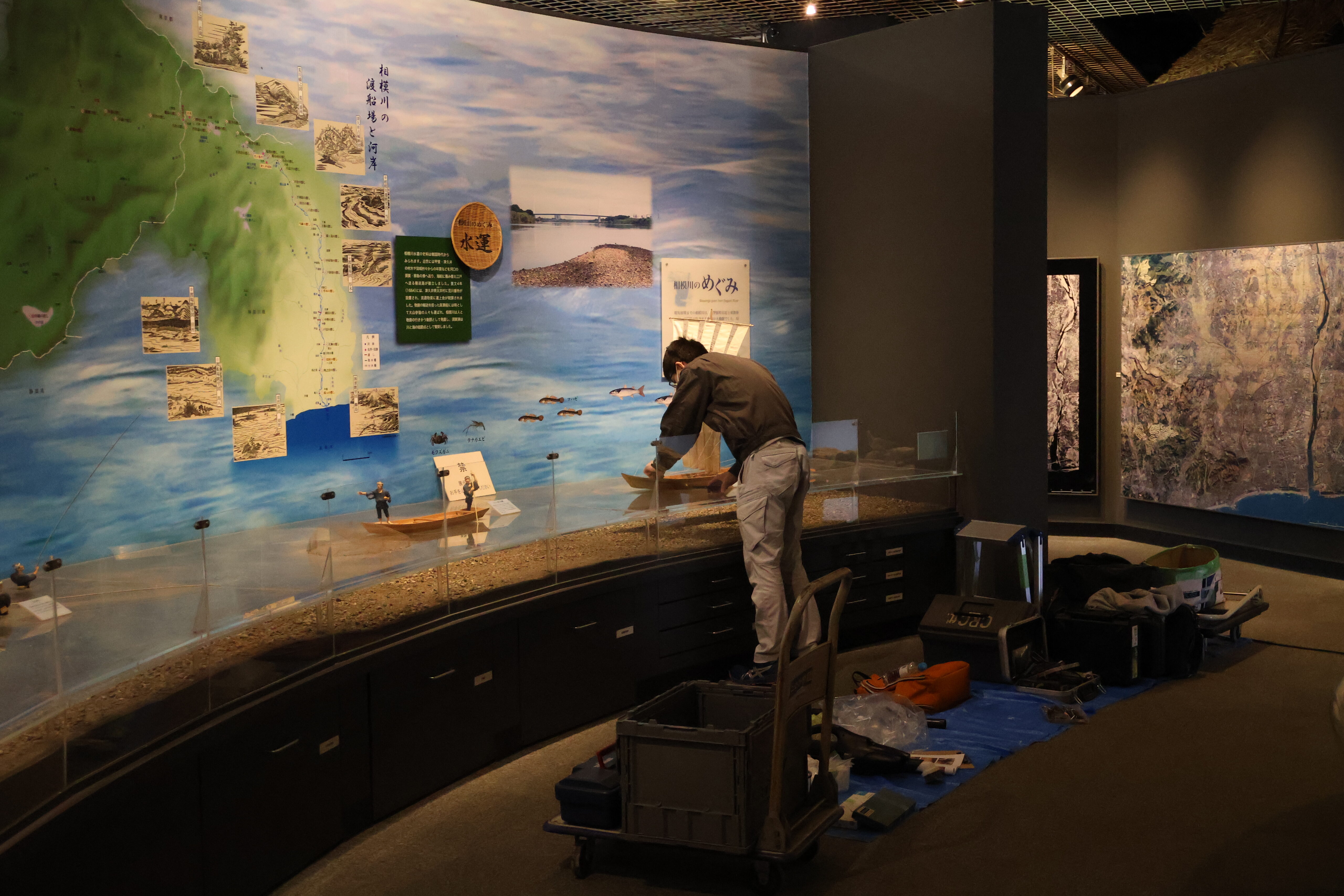 休館日だった昨日、館内の常設展示の保守・点検作業を行いました。